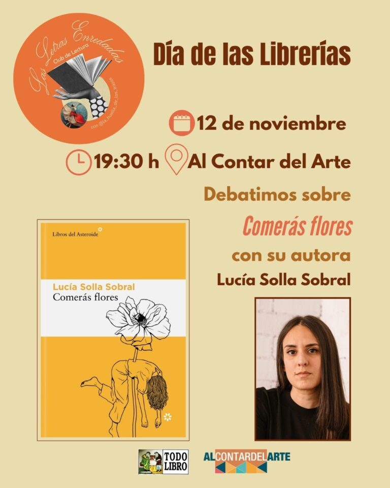 Este año celebramos el Día de las Librerías de la mejor manera posible: conversando con quienes dan vida a las historias. En colaboración con nuestro club de lectura Las Letras Enredadas, te invitamos a un encuentro con Lucía Solla Sobral, autora de Comerás flores (Libros del Asteroide).